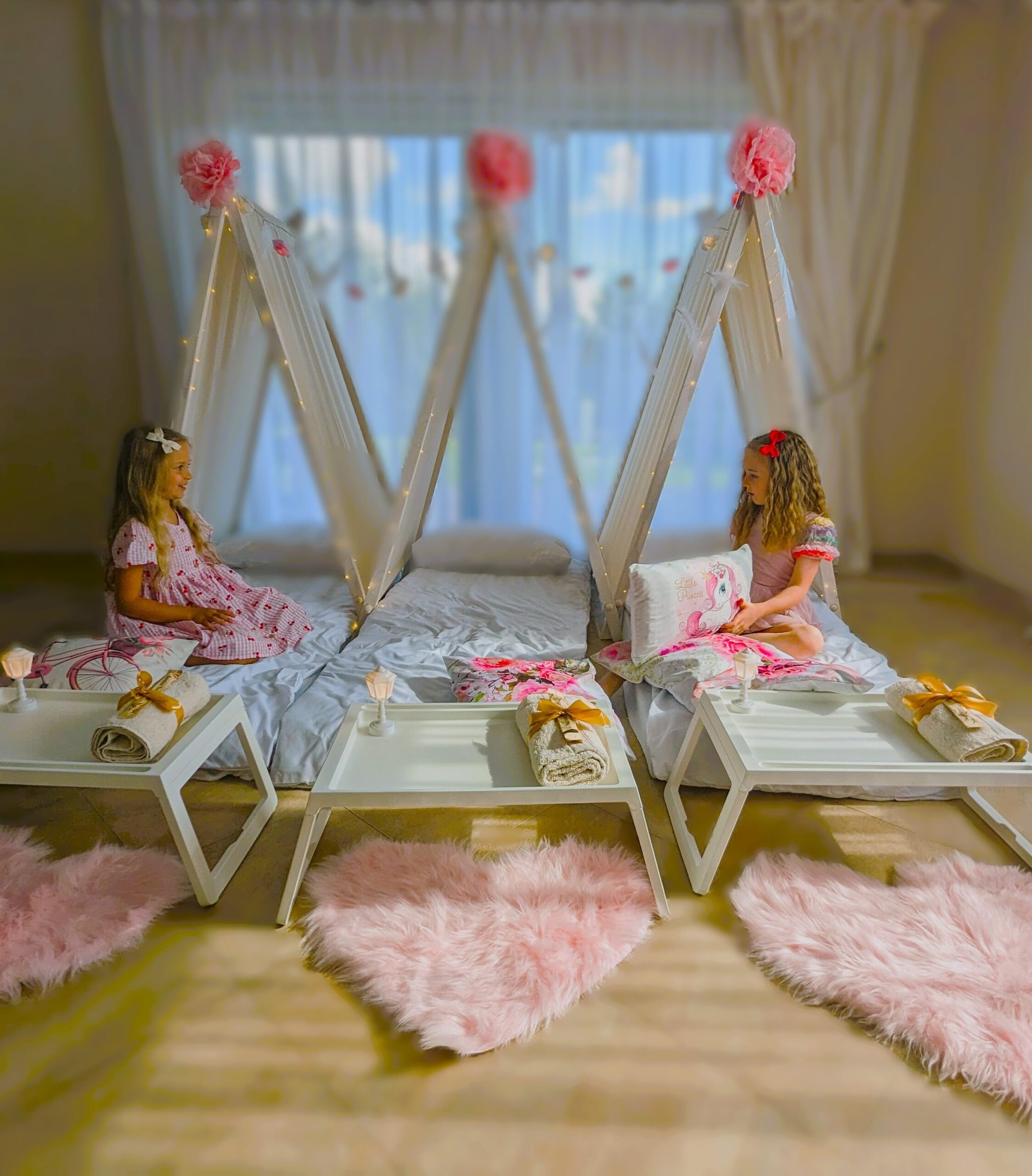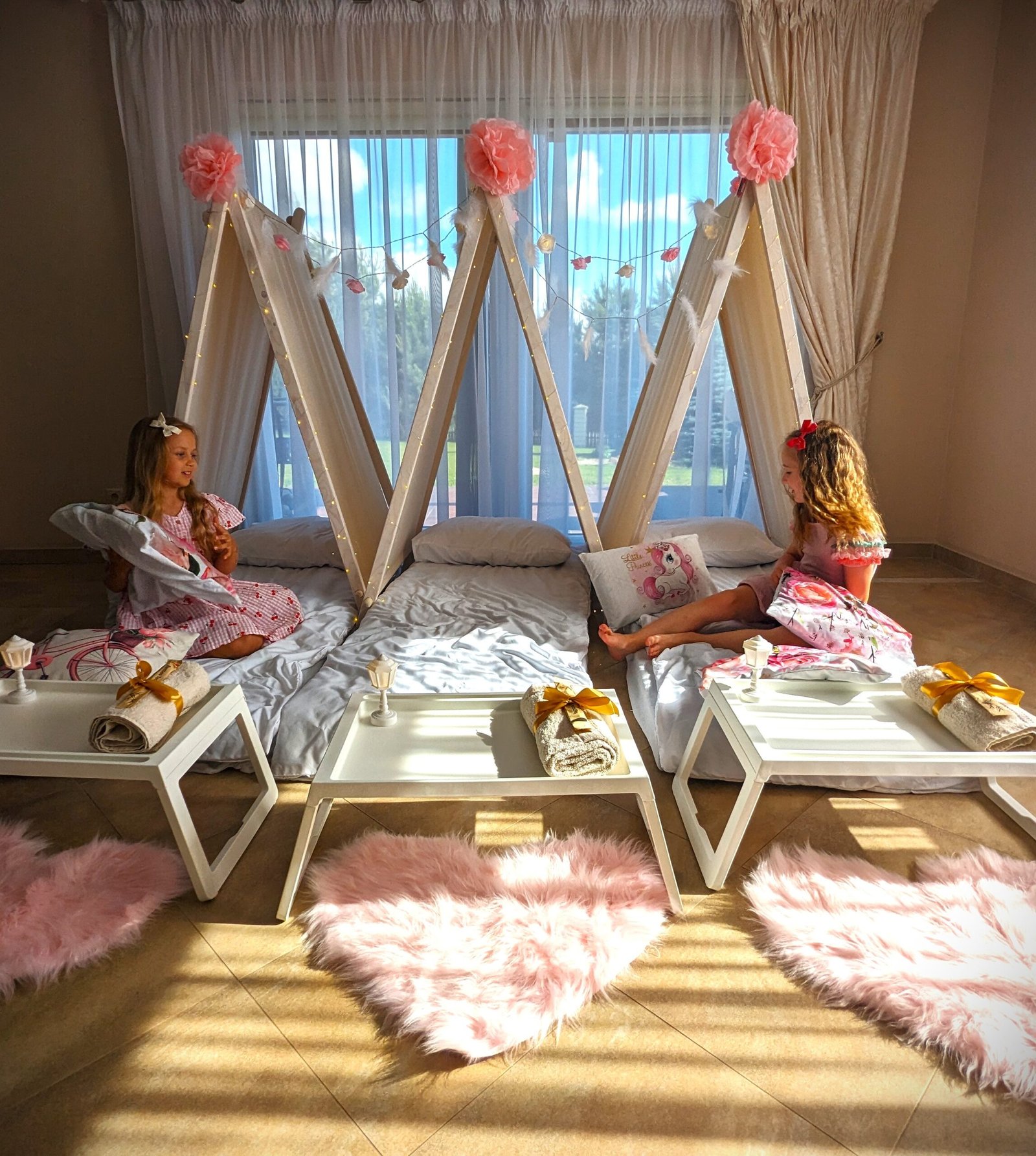 Nepamirštamas pižamų vakarėlis su teminėmis dekoracijomis, žaidimais ir svajonių gaudytojais spalvingų sapnų nakčiai!